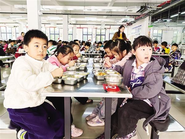 午餐时间,记者在周口市六一路小学餐厅内看到,孩子们在老师的引导下有序排队就餐。“西红柿炒鸡蛋真好吃。”“土豆炖鸡块真香!”面对记者,孩子们开心地“炫耀”着。