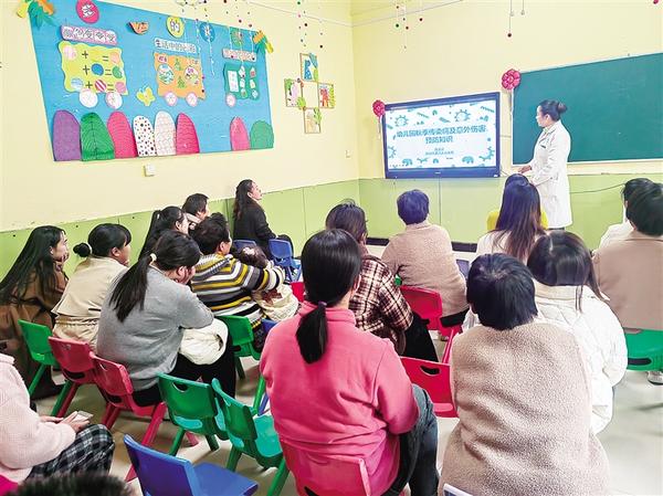 周口第六人民医院的专家为幼儿家长及幼儿园教师讲授疾病防治知识。11月7日、11月8日,该院社会心理健康金牌讲师公益巡讲团队分别走进川汇区金色摇篮幼儿园、金色童年幼儿园开展健康教育讲座,专家对幼儿常见的秋季腹泻、手足口病、流行性腮腺炎、水痘、流感等疾病的防治知识进行了详细讲解。记者 刘伟 摄