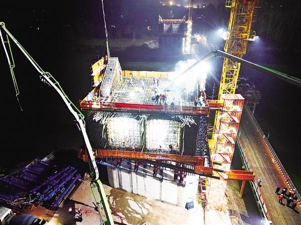 本报讯 11月13日,平漯周高铁项目跨沙河桥连续梁最大主墩71#墩0号块及系杆拱拱角预埋顺利完成浇筑,标志着该项目跨沙河桥连续梁施工已进入加速推进阶段。