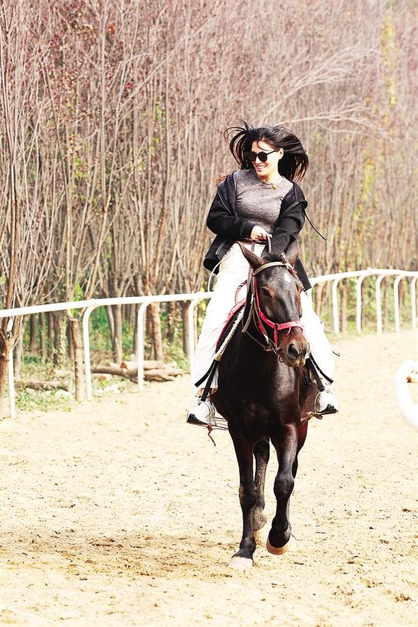 11月13日,一名游客在中心城区一家马术俱乐部学习马术。近期,马术运动受到市民追捧,人们亲身体验奔驰的自由与激情,一展风采。记者 刘俊涛 摄
