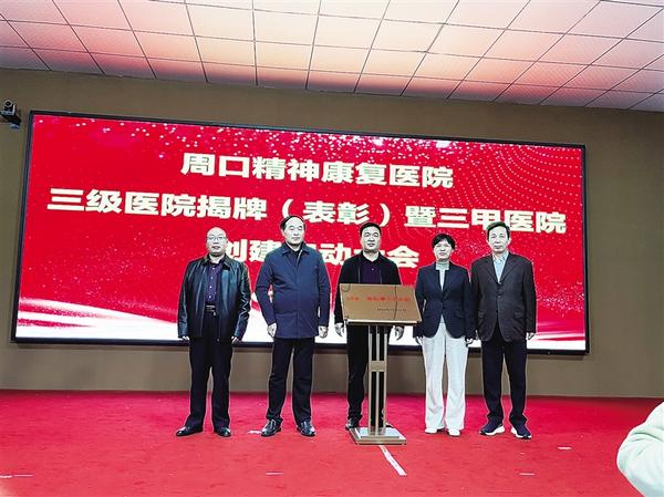 本报讯 11月16日,周口精神康复医院三级专科医院揭牌仪式举行,标志着该院在精神卫生领域取得新突破,正式迈入三级专科医院行列。
