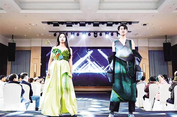 11月17日,在周口市第一届纺织服装产业智能智造缝制机械设备展现场,周口师范学院志愿者身着该校学生设计的“豫见非遗”系列服装及周口本土服装企业生产的校服、职业装等服饰亮相T台,展示周口市纺织服装产业的新工艺、新技术及行业品牌化、市场需求多样化的成果。记者 杜营营 摄