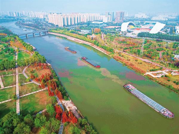 初冬时节,周口中心城区段沙颍河两岸层林尽染,几艘货船航行在河面上,如行走在画中,尽显中原港城之美。记者 梁照曾 摄