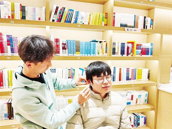 一名学员在体验耳针疗法。11月20日,周口市青年夜校第五期中医养生班开课。周口市中医院治未病科团队向学员们普及中医知识,增强我市青年群体的健康意识和自我保健意识,进一步弘扬中医传统文化。记者 刘伟 摄