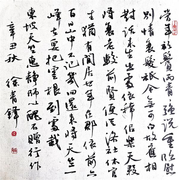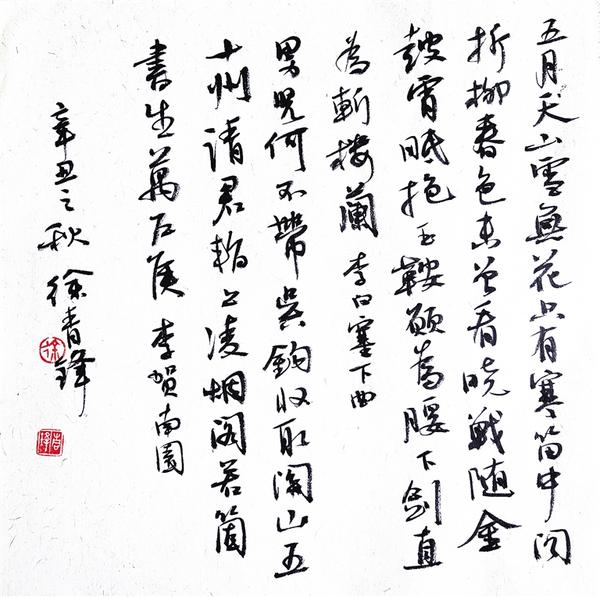 徐青锋,1968年生于淮阳,系中国书法家协会会员、中华诗词学会会员、北京《中华书画》杂志社书画院特聘书画家、河南省茶文化博物馆书画院院长,曾任淮阳县书法家协会副主席、淮阳县诗词学会会长。