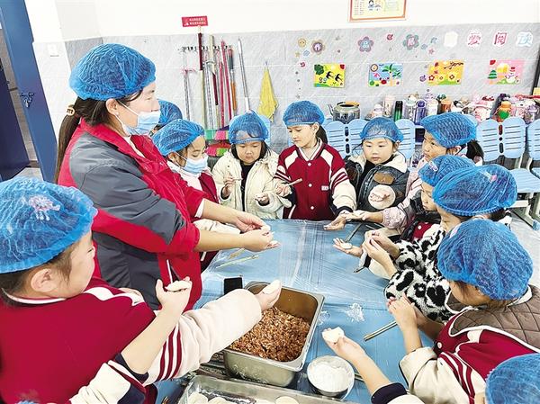 近日,在老师的耐心指导下,孩子们挽起袖子,揉面、擀皮,学习包饺子。为弘扬中华优秀传统文化,丰富校园文化生活,连日来,周口市颍河中学小学部组织学生开展以“冬日暖意浓,饺香情更长”为主题的包饺子劳动实践活动,让孩子们切身感受劳动之美。记者 王吉城 摄
