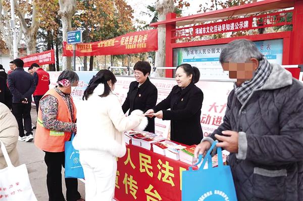 项城市法院干警向群众发放宣传资料。 通讯员 高丰 摄