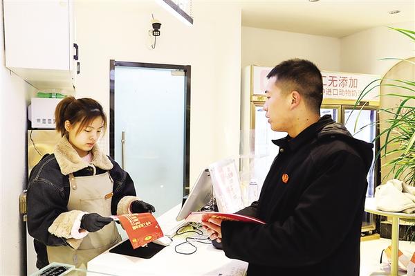 太康县法院干警向经营场所工作人员宣传宪法知识。通讯员 刘士豪 摄