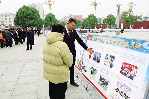 郸城县检察院干警向群众宣传宪法知识。 通讯员 张少华 摄
