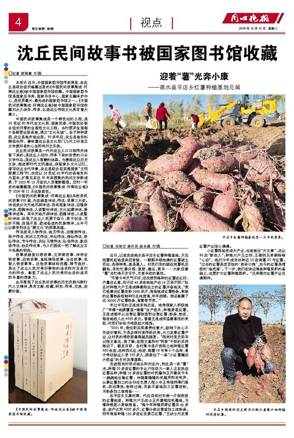近日,记者走进商水县平店乡红薯种植基地,只见挖薯机在地里来回穿梭,一颗颗丰硕饱满的红薯破土而出,色泽鲜亮、甚是喜人。村民们有的跟在挖薯机后翻捡,有的忙着分拣、装袋、搬运、装车……大家迎着“薯”光忙得不亦乐乎,尽享丰收的喜悦。