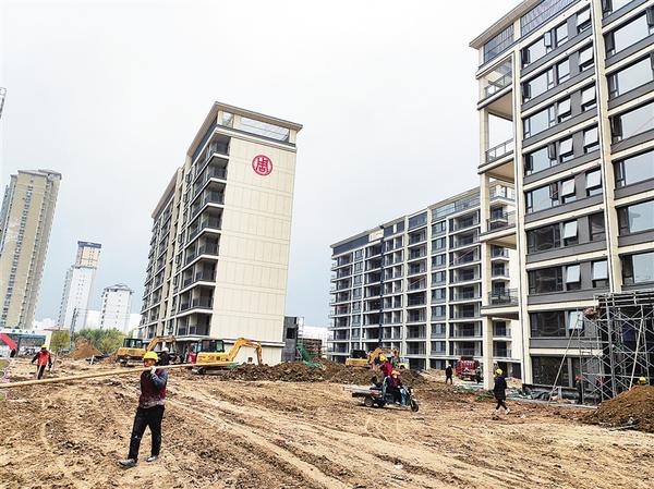 当日上午,雾气笼罩、天气寒冷,周口城投揽境项目工地却呈现出热火朝天的施工场景:一批次的9栋住宅楼楼体工程基本完工,工人们正在安装窗户、做局部外粉等扫尾工程;楼宇间,10余台挖掘机、铲车来回穿梭,数以百计的工人各司其职,平整回填土方、做消防路基、铺设管网……众多班组交叉作业,开展园林施工大会战。