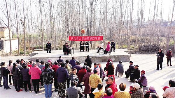 村民在巡回审判现场旁听。12月11日,扶沟县人民法院家事法庭在该县江村镇李田村巡回审理一起赡养纠纷案,使独居老人的赡养问题得到了妥善解决。庭审结束后,庭长范娜娜现场向村民发放普法宣传彩页,开展普法警示教育活动。针对此类赡养纠纷案件涉及的法律问题,范娜娜根据《中华人民共和国民法典》的具体法律规定,向村民进行了普法宣讲,并耐心解答村民咨询的法律问题,达到了“审理一案、教育一片”的社会效果。通讯员 樊帅 摄