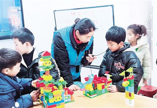 12月14日,小朋友兴高采烈地拼搭乐高积木。当日,“玩中学,学中玩”乐乐箱计划公益活动在商水县汤庄乡西赵桥党群服务中心举行,为农村流动儿童和留守儿童提供了一个展示自我、发挥创意的平台,让他们在快乐中健康成长。