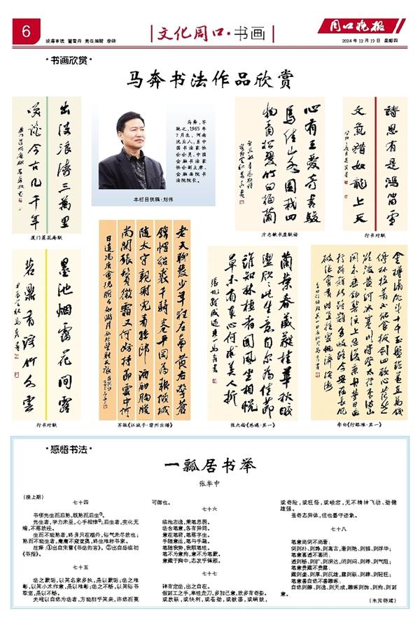 马奔,字驰之,1965年7月生,河南沈丘人,系中国书法家协会会员、中国金融书法家协会副主席、金融画院书法院院长。