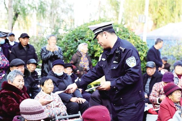 为进一步规范交通秩序,近日,我市交警部门开展集中整治、查处、引导、宣传教育活动,保障道路畅通,为外出务工人员返乡护航,努力为人民群众欢度元旦、春节创造安全稳定的社会环境。图为交警向群众发放宣传资料。记者 刘俊涛 通讯员 任君箫 赵辉 摄