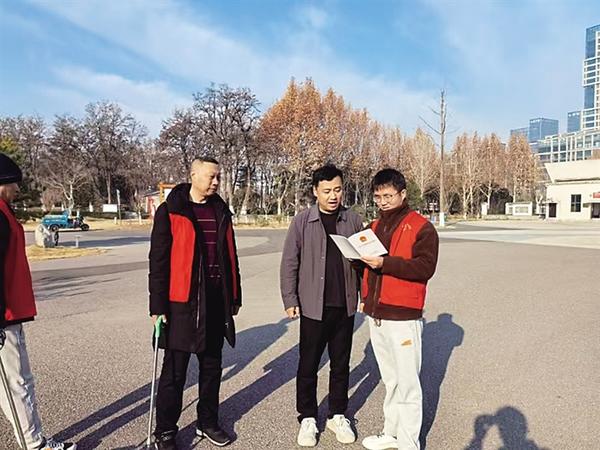 《周口市公园条例》将于2025年1月1日起正式施行。12月24日上午,市园林绿化中心党支部组织周口植物园党员志愿者在园区内开展志愿服务活动,向市民宣讲《周口市公园条例》中关于禁止在公园内骑行、携带宠物等相关规定,引导市民文明入园、文明游园。记者 李瑞才 通讯员 白锦源 摄