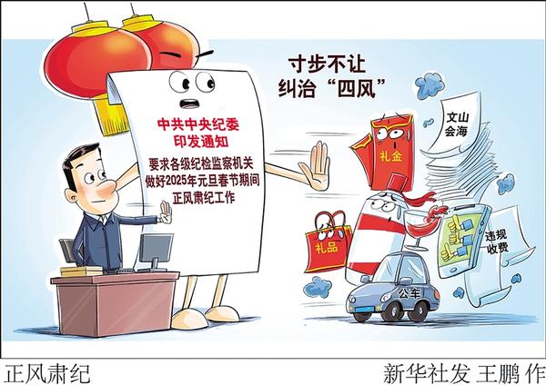 中共中央纪委日前印发通知,要求各级纪检监察机关做好2025年元旦、春节期间正风肃纪工作,强化正风肃纪,营造风清气正节日氛围。
