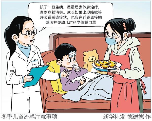 入冬以来,冷空气活动频繁,儿童呼吸道疾病进入高发期。上海市儿童医院急诊科主任医师黄玉娟提醒家长:“孩子一旦生病,尽量居家休息治疗,直到症状消失。家长如果出现咳嗽等呼吸道感染症状,应在近距离接触或照护婴幼儿时科学佩戴口罩。” 新华社发 德德德 作