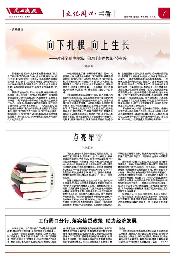 智慧在河流间流淌,也在文字间沉淀。去年的一个寒冷冬夜,我从冰天雪地里举步维艰地回到家,工作中的挫折让我的情绪跌至谷底。我默默地坐在书桌前,点亮那盏橘黄色的台灯。柔和的光线如同温暖的臂弯,将我紧紧包裹。我随手拿起一本迟子建的散文集《也是冬天,也是春天》,翻阅起来。窗外的风雪声逐渐远去,书页间的墨香仿佛带着春天的暖意,一点点融化了我内心的冰霜。渐渐地,文字如星光点点,连成线,织成片,照亮周围的星空,描绘出一幅色彩斑斓的画卷,春天的气息悄然袭来。在那样的夜晚,我从琐碎的生活缝隙中抽身,转身拥抱一座精神乐园,在那里找到了光明和安宁,足以抵抗生活中的风霜雨雪。
