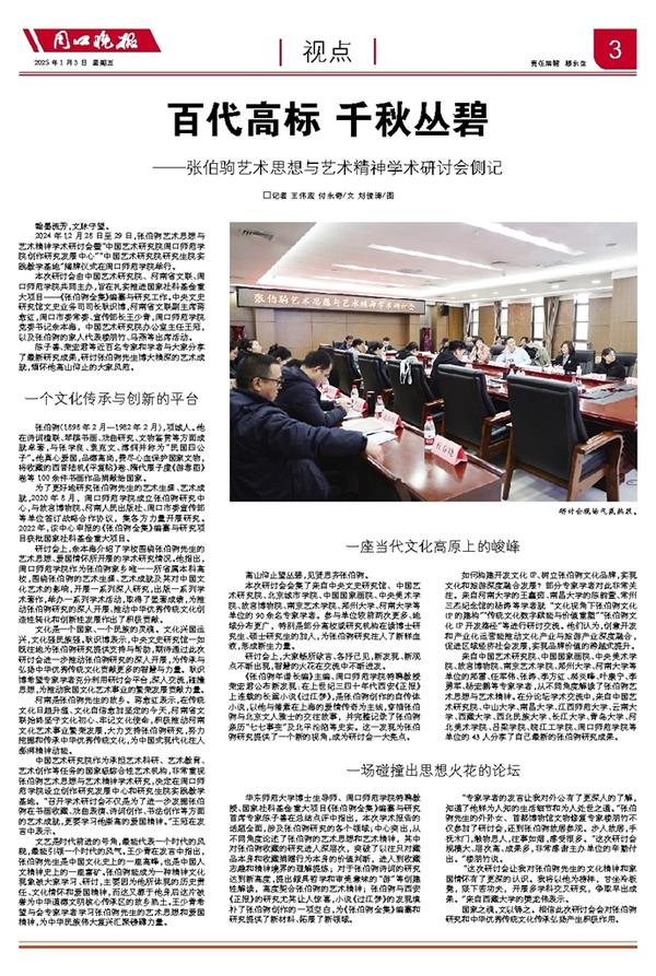 2024年12月28日至29日,张伯驹艺术思想与艺术精神学术研讨会暨“中国艺术研究院周口师范学院创作研究发展中心”“中国艺术研究院研究生院实践教学基地”揭牌仪式在周口师范学院举行。