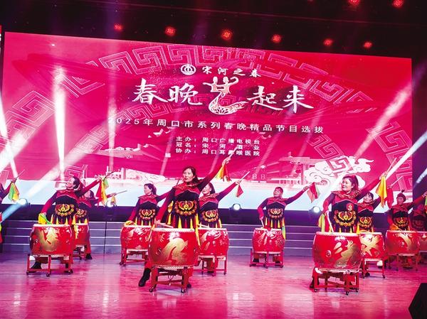 1月3日晚,九妹鼓舞团在进行《盛世欢歌》表演。当日,由周口广播电视台主办、周口耳鼻喉医院协办的“春晚‘艺’起来”2025年周口市春晚选拔赛圆满结束。小朋友张莜涵的《讲故事》获一等奖,赢得周口耳鼻喉医院提供的电动三轮车一辆。九鼎艺术团的《四媒婆抬花轿》等节目或诙谐有趣,或高雅大气,获得不同奖项。记者 刘俊涛 刘艳霞 摄