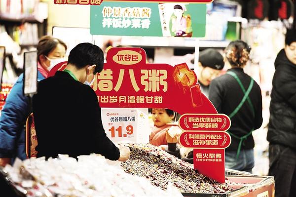 腊八节,是中国传统节日之一。这一天,人们会熬制香甜的腊八粥。腊八节不仅是品尝美食的时刻,更是家人团聚、传承文化的重要日子,它承载着人们对美好生活的向往和对传统习俗的尊重。图为1月2日,在项城某商城,市民正在采购腊八粥食材。记者 刘俊涛 摄