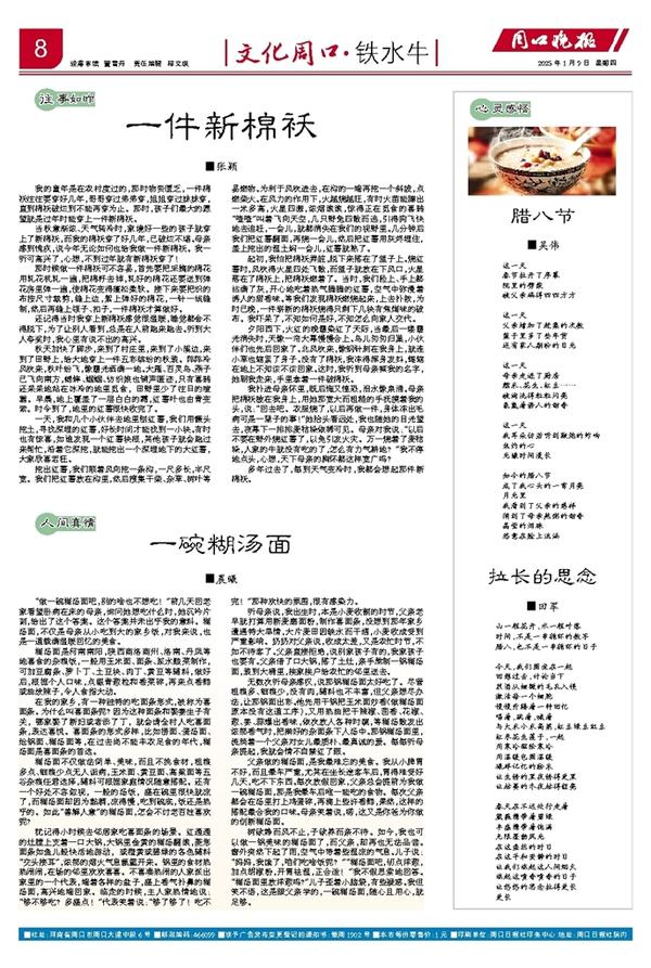 多年过去了,每到天气变冷时,我都会想起那件新棉袄。