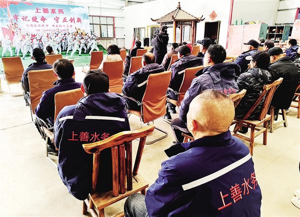 1月7日,周口民族管弦乐团合唱团走进商水县上善水务有限公司,与该公司职工欢度腊八节。演员们用精湛的技艺和深情的演唱,将红军战士们在长征途中坚韧不拔、英勇无畏的精神展现得淋漓尽致,为该公司职工送上丰富多彩的“文化大餐”。记者 马治卫 通讯员 郭利军 摄