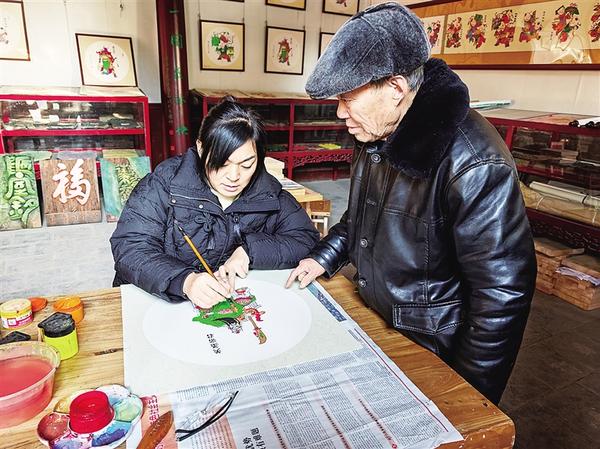 1月8日,在周家口木版年画传承基地,年画艺人正忙着绘稿、刻板,制作木版年画,在供应节日市场的同时,也为新春佳节增添了喜庆的气氛。