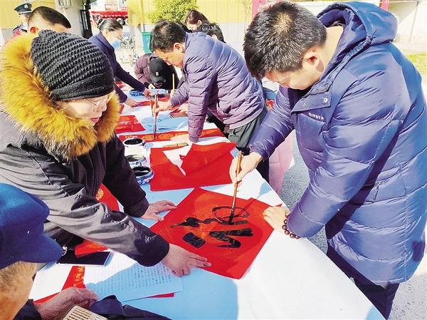 蛇年新春即将来临,为弘扬中华优秀传统文化,营造浓厚的节日氛围,连日来,淮阳区组织开展“百花迎新乐中原”义写春联惠民活动,向广大群众送上新春祝福。图为该区书法家来到临蔡镇义写春联,把“福”字送到万家,受到群众欢迎。 记者 侯俊豫 通讯员 付世桢 摄
