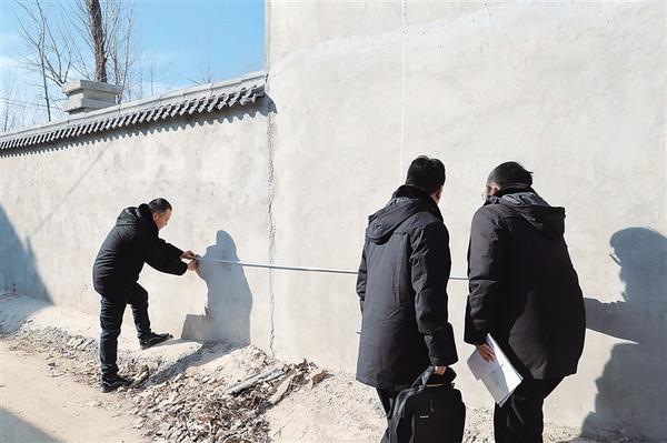 到达现场后,法庭干警使用测量工具对原告和被告的房屋院墙进行了实地测量,并制作了勘验笔录,留存了影像资料。同时,席长风还走访了双方当事人所在村的村民及行政村干部,了解到了更多真实情况,为案件的公正审理奠定了坚实基础。目前,该案还在进一步审理之中。