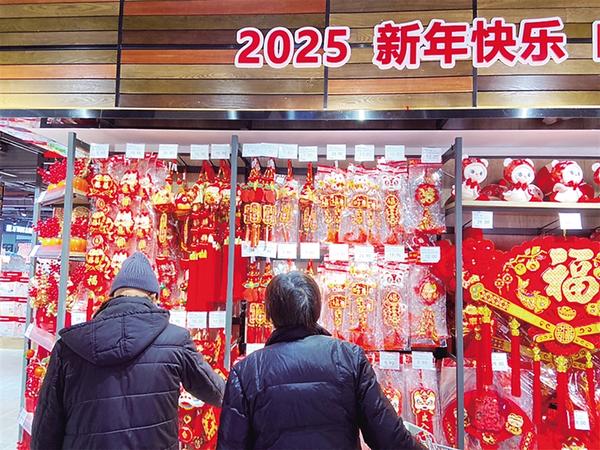 1月13日,市民在选购蛇年装饰品。春节临近,中心城区各大商超在醒目位置摆放着中国结、灯笼以及十二生肖蛇等元素的装饰品,供市民选购。记者 苑美丽 摄
