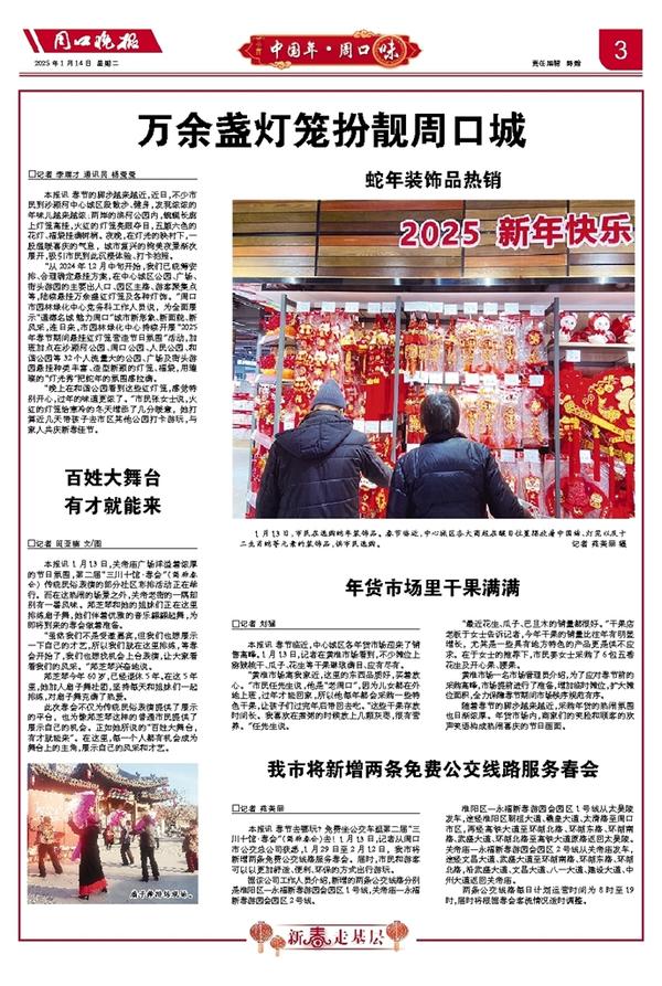 本报讯 春节去哪玩?免费坐公交车逛第二届“三川十馆·春会”(简称春会)去!1月13日,记者从周口市公交总公司获悉,1月29日至2月12日,我市将新增两条免费公交线路服务春会。届时,市民和游客可以以更加舒适、便利、环保的方式出行游玩。