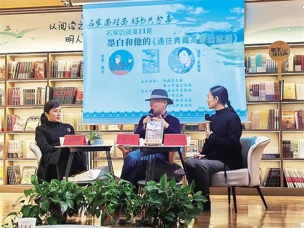 本报讯 (记者 黄佳 文/图)1月12日下午,河南省文学院院长、河南省作家协会副主席张晓雪与先锋小说家、剧作家墨白,在周口市新华书店参加周口市文学艺术周之“名家面对面 好书共分享”活动。墨白携新书《通往青藏高原的道路》与读者见面。