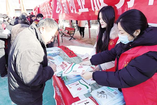 法院工作人员向群众发放宣传资料。1月15日上午,鹿邑县人民法院在王皮溜镇范桥行政村开展“文明实践暖新春”普法宣传活动。活动现场,工作人员耐心地为过往群众答疑解惑,向群众发放《中华人民共和国民法典》《婚姻家事指南》《民间借贷法律知识》《土地纠纷法律知识》等普法宣传手册,并提醒广大群众,临近春节,谨防电信诈骗,注意人身财产安全。通讯员 张旭 摄