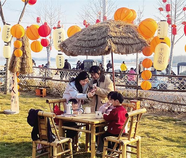 本报讯 1月20日,记者在永福新春游园会园区内看到,这里热闹非凡,游人如织,露营咖啡馆、网红小吃摊、非遗文化展厅等,丰富的消费场景满足了游客多样化的消费需求,成为市民“一站式”吃喝玩乐的好去处,有力推动春节期间的消费增长。
