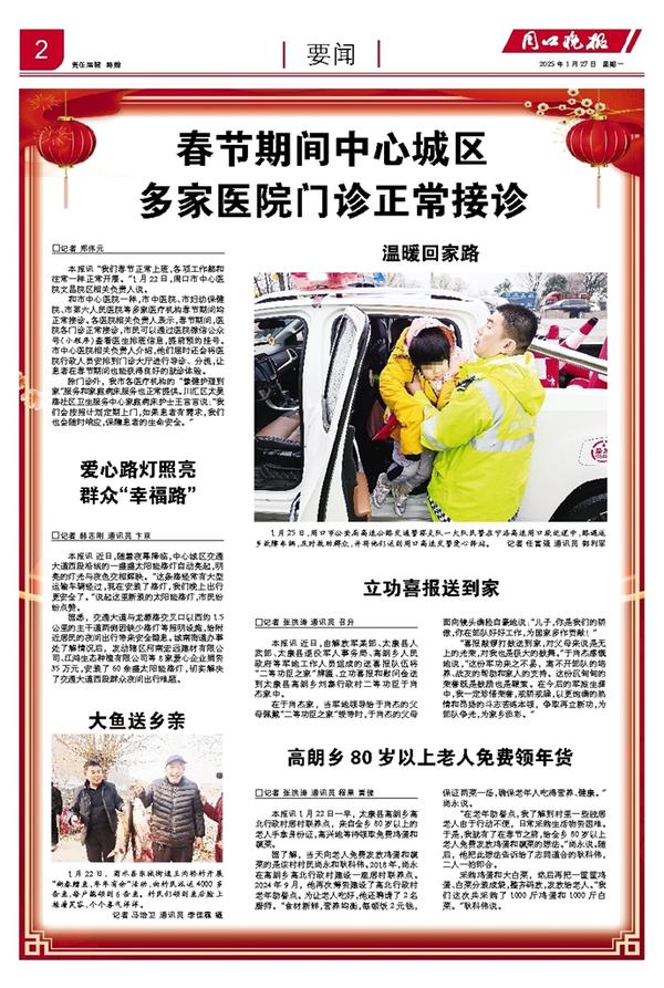 1月25日,周口市公安局高速公路交通警察支队一大队民警在宁洛高速周口段巡逻中,路遇返乡故障车辆,及时救助群众,并将他们送到周口高速交警爱心驿站。记者 任富强 通讯员 郭利军