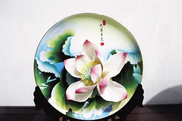 2024年,皮伟、陈玉环成立周口荷花瓷艺术创作研究中心,制订了清晰的产业规划,设立3个窑口:其一在福建德化,烧制荷花图纹白瓷器皿,批量供应市场;其二在江西景德镇,烧制瓷盘,运到淮阳,以作底材;其三在淮阳区,是最重要的“创意大脑”,为德化窑口提供设计图案,对景德镇瓷盘进行二次创作,然后烧制成荷花瓷。