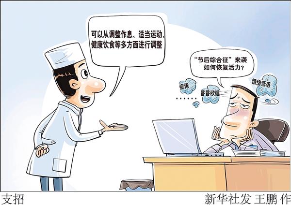 春节假期结束后,有些人会感到疲倦、昏昏欲睡、精神不济、情绪低落,还可能出现恶心、腹泻、食欲不振等胃肠道不适。专家表示,这有可能是“节后综合征”的表现,可以从调整作息、适当运动、健康饮食等多方面进行调整。 新华社发 王鹏 作