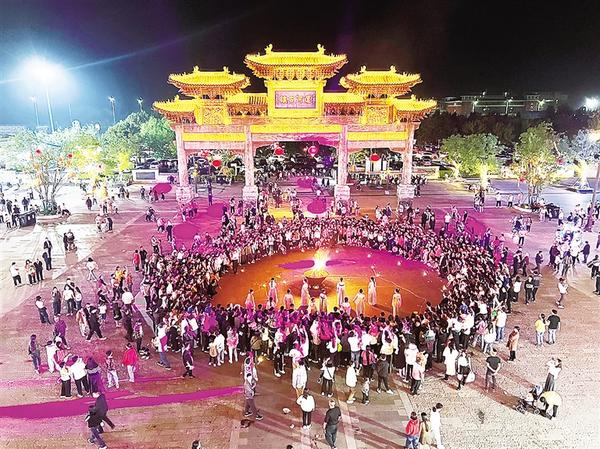 近日,游客在周口建业运河古镇篝火晚会欢聚。近期,这里天天都会有盛大的篝火晚会。每当夜幕降临,这里篝火点燃,火苗跳跃,映红每个人的笑脸。大家围着火堆载歌载舞,欢声笑语不断,烟火气与欢乐交织,年味和热闹氛围直接拉满。记者 李瑞才 摄