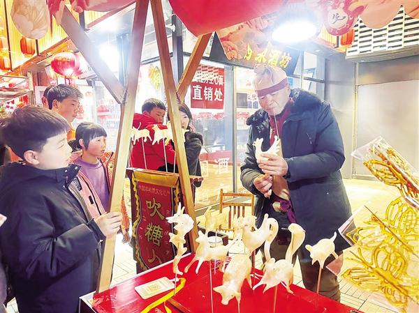 连日来,中心城区关帝庙文化广场沉浸在一片灯火辉煌、欢声笑语之中。在广场一隅,一位老者以糖为墨,以气为笔,绘就一幅幅甜蜜而生动的画卷——这便是61岁的刘师傅,他的刘家糖人摊位前,人潮涌动,成为广场上一道独特的风景线。