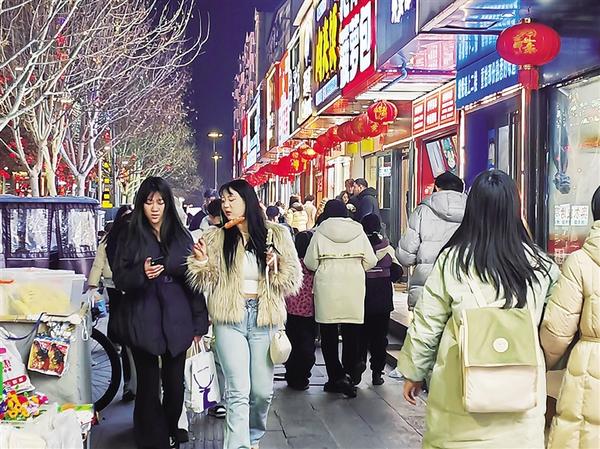 五一路商铺林立,灯火通明,来逛这条小吃街的年轻人居多。小张和女友洋洋下午5点就在小吃街逛上了,他俩在小吃街一家麻辣烫店吃饭,吃完麻辣烫在一家奶茶店买了两杯奶茶后径直走进电影院。小张告诉记者,赏花灯、吃汤圆、猜灯谜等传统民俗活动,是不少人过节的“必备项目”。但除了这些,年轻人更喜欢在节日里走进影院,当天已经是小张和女友连续第三天看电影了。“准备把春节档电影看个遍。”小张笑着说。