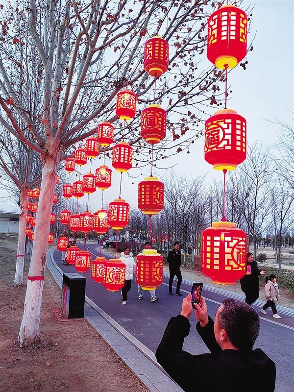 为营造浓厚的节日氛围,2月11日~2月13日,我市在引黄调蓄湖东、西、南、北4个入口处及周边区域设置4000条灯谜,并为获奖者发放奖品;摆放大型花灯,为群众奉上一场集观赏性、娱乐性于一体的文化盛宴。
