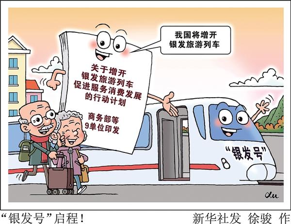 商务部、文化和旅游部、国铁集团等9单位近日印发的《关于增开银发旅游列车 促进服务消费发展的行动计划》对外公布,从增加银发旅游列车服务供给、强化适老化设施保障、提升银发旅游列车服务水平、优化银发旅游列车发展环境等方面提出12条具体举措。 新华社发 徐骏 作