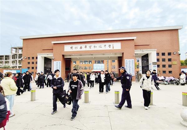 近日,商水县公安局东城派出所民警在该县希望初级中学门前引导学生有序走出校门 。“神兽”归笼,师生陆续返校,又是一个春季“开学季”,校园门口成了最繁忙的路段。商水县公安局把好开学安全“第一关”, 督促学校落实安全主体责任,站好“护学岗”,倾力守护校园安全。通讯员 郭利军 摄