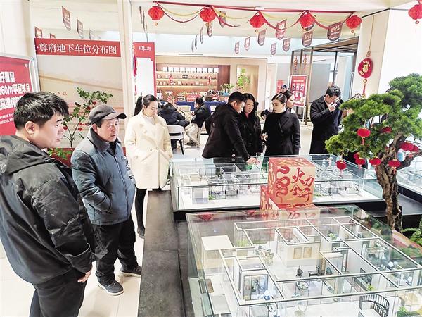 2月16日下午,位于淮阳区文鼎路与陈风路交会处东南角的建业尊府营销中心热闹非凡,客流如织,沙盘前、户模旁围满看房选房的客户;谈判区座无虚席,6张谈判桌明显不够用,部分客户只好站着询价、议价。现场的16名置业顾问更是忙得不可开交,在人群中穿梭,为客户答疑解惑。