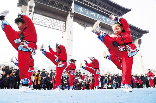 2月22日,萌娃参加集体项目比赛。当日,由省体育局、省文明办、省农业农村厅、省体育总会主办,省武术体操冰雪运动中心、市教育体育局、淮阳区人民政府承办的“2025年全省全民健身大拜年活动暨河南省第十九届中原大舞台武术展演活动(淮阳赛区)”在淮阳区举办,来自全市武术学校、武术俱乐部、武术站点的63支代表队的1083名武术健儿参加此次比赛。记者 梁照曾 摄