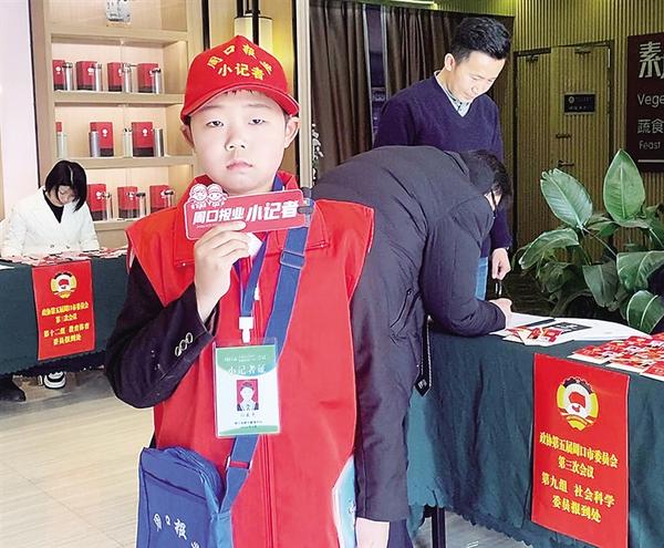 小记者:孙羲尧 周口市开来路小学五(1)班 近日,我市两会胜利召开。能参与两会采访,我深感荣幸。 2月16日,在采访王委员时,我既紧张又害怕。向王委员提问时,我紧张地说:“您认为当前青少年心理健康方面面临哪些挑战?”王委员一眼便看出了我的紧张情绪,向我报以鼓励的微笑,温柔作答。在她的感染下,我渐渐恢复自信,提问的声音也逐渐变得洪亮。 2月18日,我一早便赶到周口师范学院,随后和大家一起步入该学院至善会堂。在周口报业小记者中心老师的指导下,我们投入了当日的采访活动。采访活动中,我们还邀请了“中国好税官”韩宇南一起合影。 此次两会采访活动,是我参加过的最大规模的活动。我不仅学到了新知识,还锻炼了随机应变的能力,积累了许多书本外的宝贵经验。(辅导老师:张成新)
