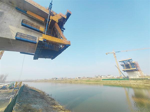 2月27日,施工队正在对359号、360号墩进行现浇梁挂篮施工。春节过后,平漯周高铁项目整体建设进入加速阶段。记者在贾鲁河连续梁施工现场获悉,自2月5日开工以来,中铁七局积极引入新技术、新工艺,不断优化施工方案,每天四五十名工人同时作业,施工效率和工程质量显著提高。据悉,该连续梁预计今年9月份合龙。记者 王永剑 摄