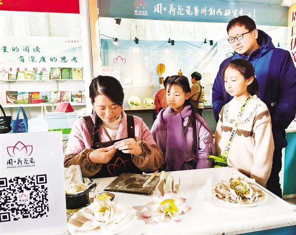 在2025中原古韵——中国(淮阳)非物质文化遗产展演活动非遗展示大厅里,别人展的是产品,荷花瓷创始人皮伟却别出心裁地把制作工艺一并展出。此招果然奏效,展位前挤满了游客。
